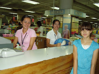 Probably half the mall is a food booths. there are so many people in every shop to help you. Monica wanted to look for a pair of carpi's. So we asked the 1st person we saw. Within a few minutes we had 6 people trying to find what she wanted and more. Then they come to the changing room with us, and look at everything she trys on, and says "that's pretty, or you need a larger size" and one of them runs off to grab it. Then they were repeating her name "mon-i -c a" over and over. They found it an interesting name. Amazing service! I'm afraid it's a little overwhelming.