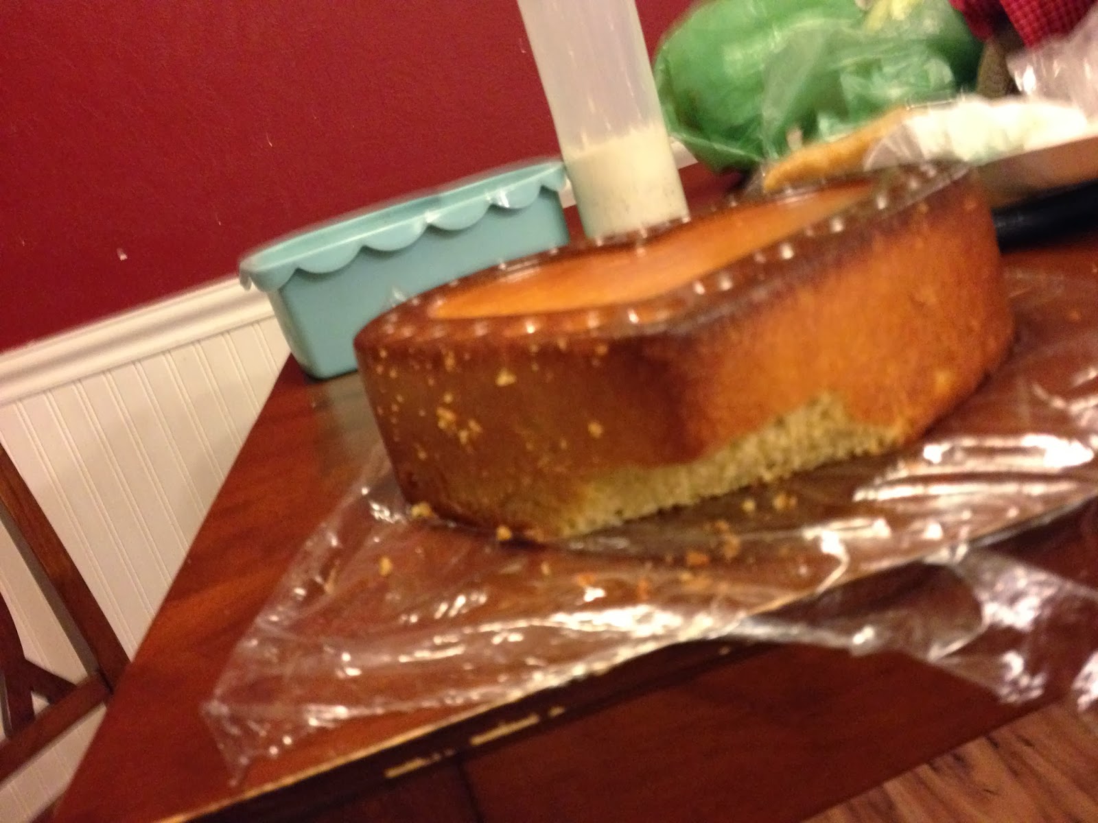 I made a sponge cake and it turned out so pretty Monica didn't want it ruined so she took a chunk out of the bottom.